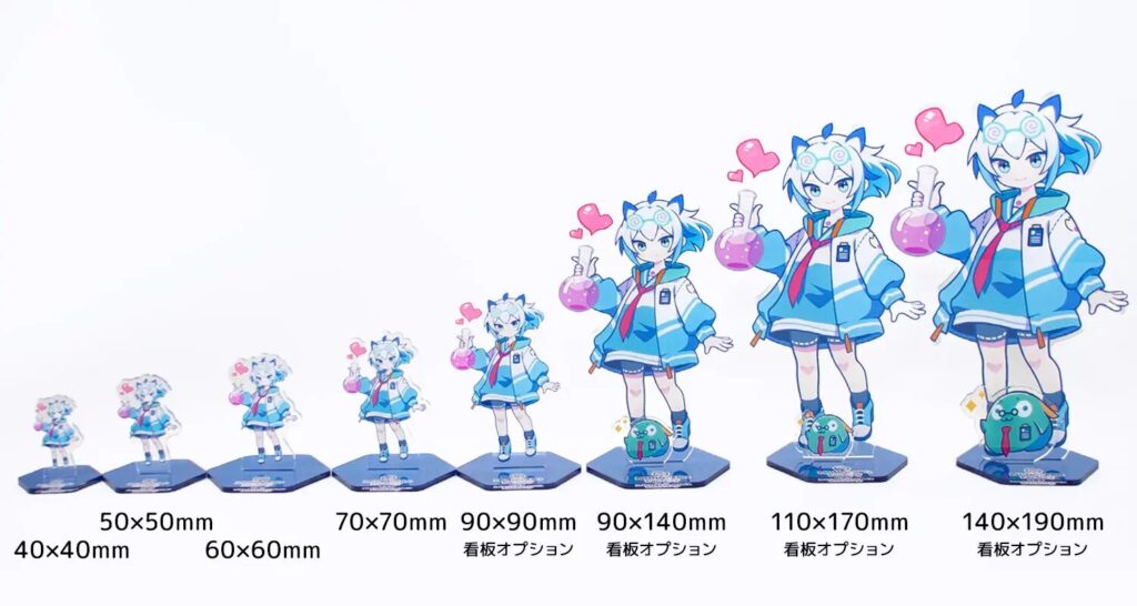 アクリルスタンドの価格は、サイズ・厚み・数量によって大きく変動します。