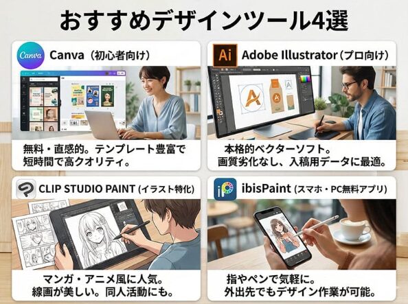 デザイン作成には、無料ツールから本格的なソフトまで、さまざまな選択肢があります。
