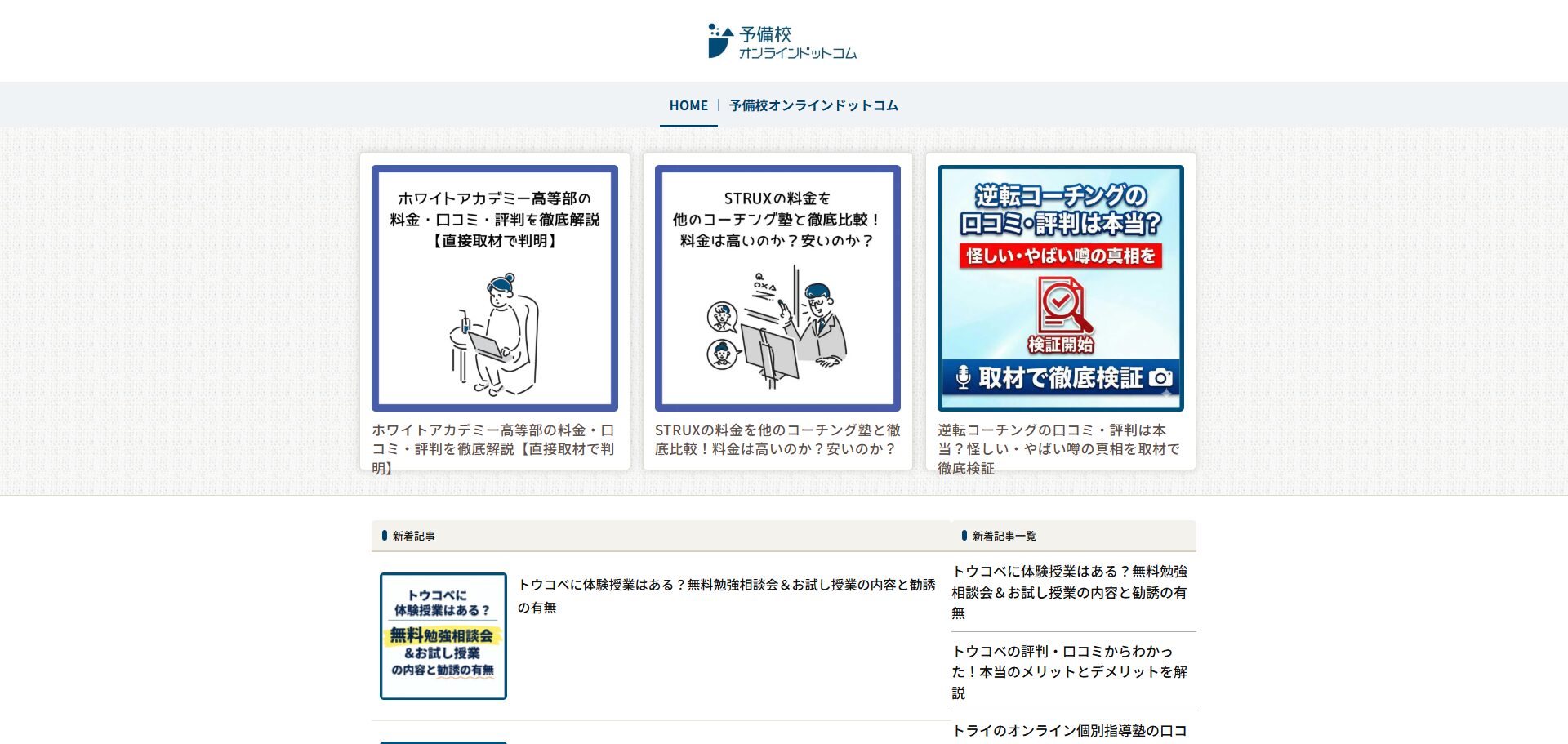 予備校オンラインドットコムは、大学受験を目指す高校生や浪人生に向けて、予備校・オンライン塾の情報をわかりやすく届ける教育メディアです。800社以上の学習塾を調査し、特徴・料金・口コミ・合格戦略まで丁寧に比較・解説して、あなたに合った学習サービス選びをサポートします。受験の悩みや勉強法のコツも紹介して合格を後押しします。