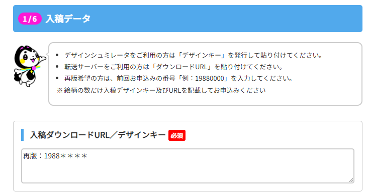 ※以前のご注文が複数絵柄で、今回発注分がそのなかの1種類を使ってほしいなどの場合、わかるように説明書きも添えてください。